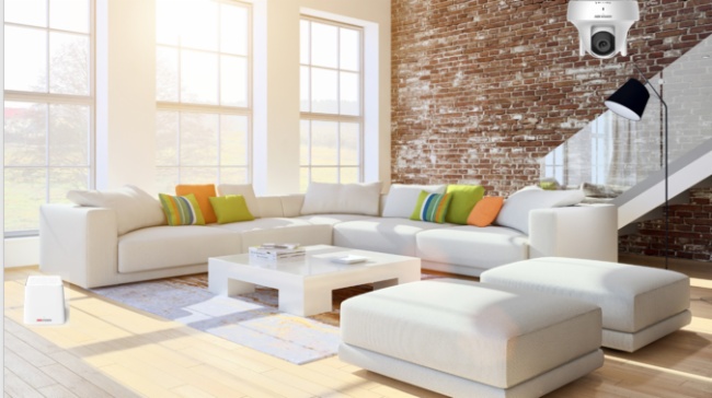 客厅部署无线PT蜗牛摄像机,镜头能够上下左右转动,便捷查看室内情况,实时视音频记录,守护家人安全。业主出门在外,也可以通过手机远程查看家中情况。