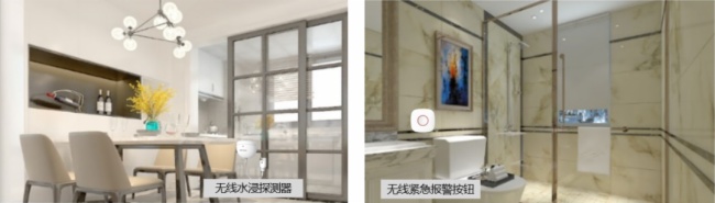 在厨房部署无线水浸探测器,探测厨房漫水;