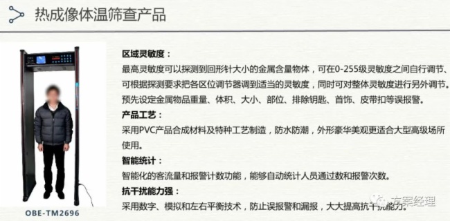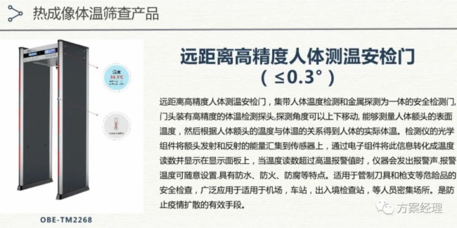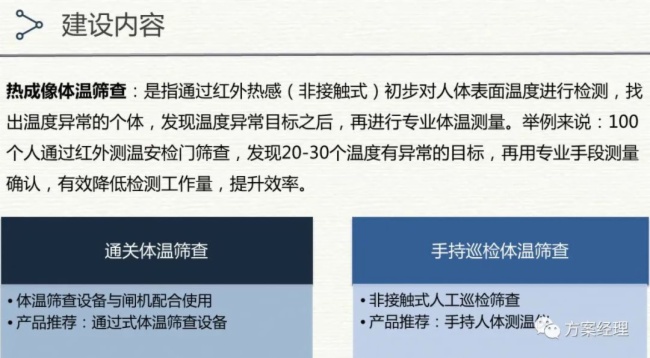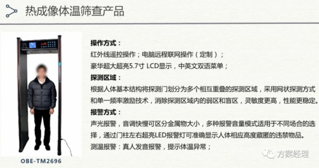 热成像体温筛查是指通过红外热感(非接触式)初步对人体表面温度进行检测,找出温度异常的个体,发现温度异常目标之后,再进行专业体温测量。