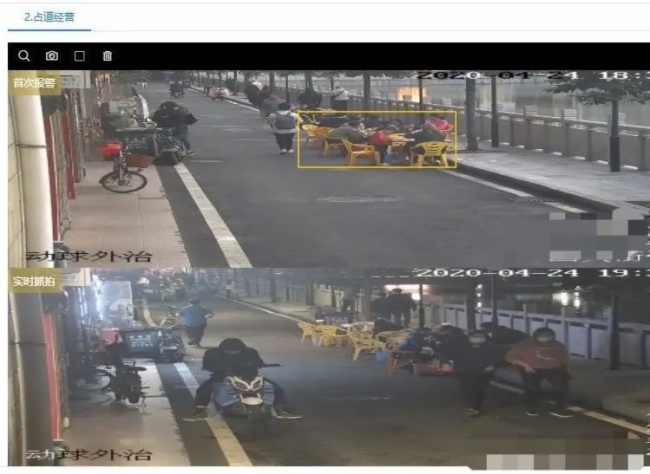 4月24日下午,视频智能分析系统自动识别到一处疑似占道经营的现场。通讯员供图