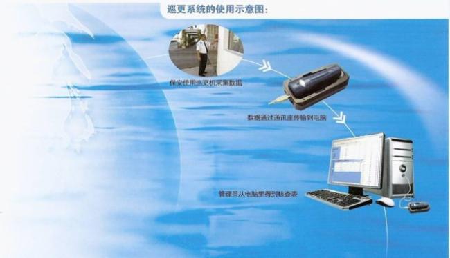 巡更系统主要由:管理计算机、巡更棒、信息钮、通讯底座组成。巡更时安保人员用巡更棒在巡更线路上的信息钮进行数据采集,巡更结束后通过通讯底座将巡更棒内的信息采集到管理电脑中。