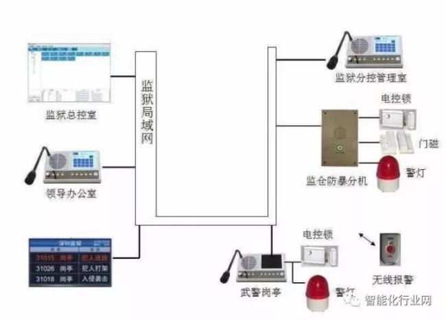 基于监狱专网架构,一旦监仓有紧急情况发生时,可及时向分控室/值班室报警及对讲,同时配置报警控制盒及三色门灯,便于扩展报警按钮及报警提醒;如分控室无人应答,能自动转到主控中心代答;主控室寻呼控制台具分控室的所有功能,可随时与各监仓进行可视对讲及监听监视;分控室/值班室配置报警显示接口,可直观显示报警对应监仓编号及报警信息;AB门/武警岗亭采用触摸式可视对讲终端,可设置快捷呼叫功能,一键呼叫到指挥中心、武警指挥部、分控室等区域,满足快速响应需求;同时在公共区域/劳动车间配置广播设备,可对所辖区域进行电化教育与广播喊话。