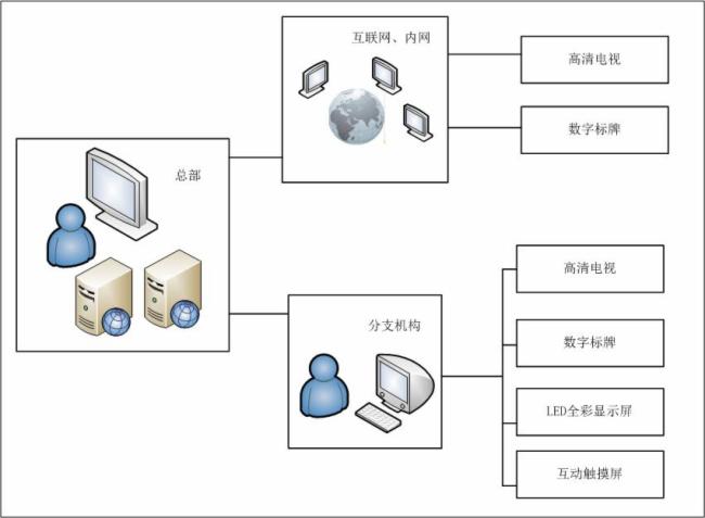 系统采用B/S架构,使管理平台与服务器相对分离,用户只需通过互联网或宾馆酒店内部专用网登陆服务器端即可完成内容设计并发布,节目通过网络传输到各播放端,进行本地播放。