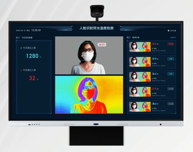 疫情肆虐的同时,可视科技推出了红外测温方案——人脸识别双光测温报警系统和人脸识别体温测试门禁屏。这为减少病毒传播扩散、确保未确诊的密切接触者及时隔离和遏制疫情蔓延提供了有力保障。