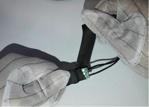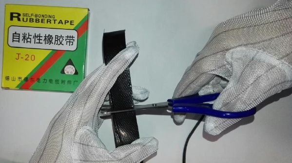 根据需要缠绕的区域剪一段长度适中的防水橡胶带。