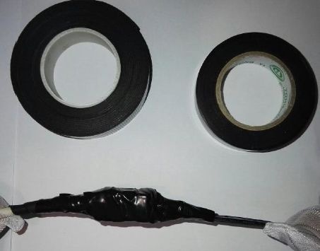 使用绝缘胶带,仿照防水橡胶带的缠绕方式,在表层增加一层绝缘胶带。