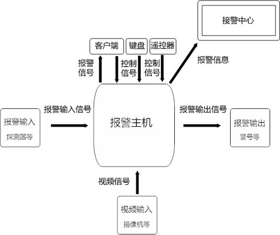 报警系统由报警信号输入设备(通常为探测器,或紧急按钮等手动触发设备),报警主机(信号处理),报警信号输出设备(继电器,如声光报警设备等),控制设备(如键盘,遥控器等),管理平台(平台软件,客户端软件,移动端软件),接警中心(网络,电话,无线)等组成。