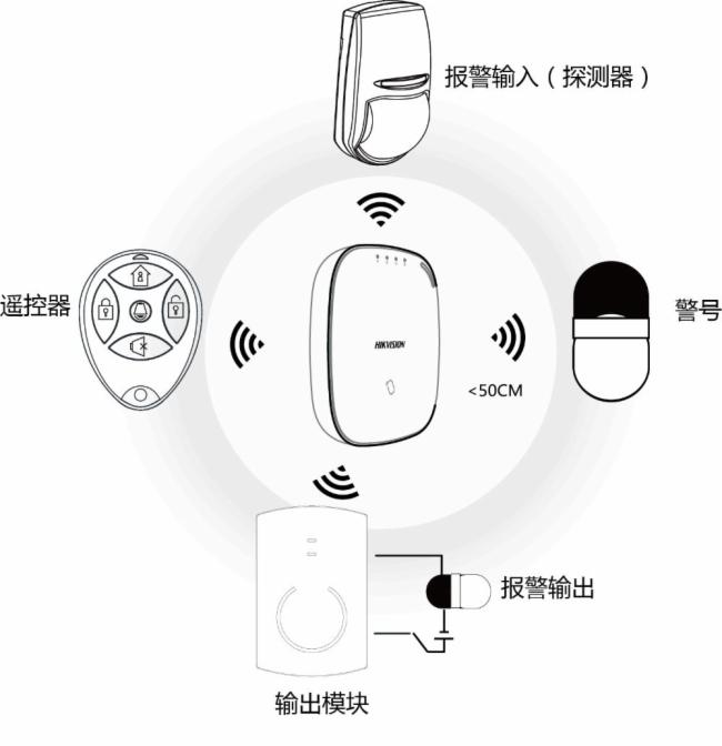 支持无线探测器输入,无线报警输出,通过RF无线信号彼此传输,通过无线网络上传中心,民用较多。