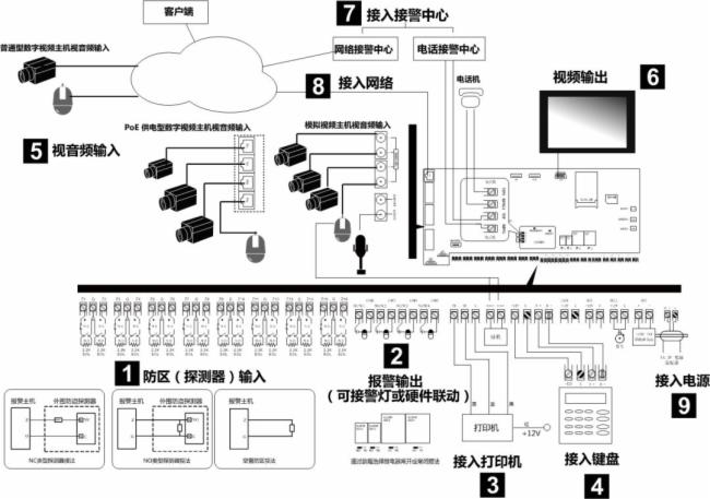 网络主机的基础上,增加视频接入功能,BNC接口模拟摄像机,网络接口,Poe供电网络摄像机,内有网络通道,可以通过客户端软件添加网络摄像机。